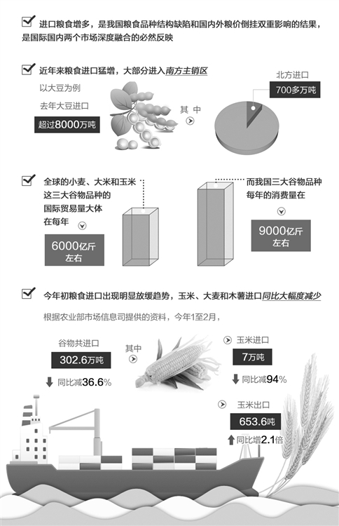 專家表示,雖然糧食進口可以在調節國內糧食供應結構方面發揮積極作用,但要防止出現某些糧食品種對進口的過度依賴,把握好進口的節奏和規模,既防止糧食大規模進口衝擊國內糧食市場,又防止引發國際糧食供應緊張。
