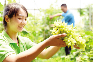 國外有手指餅幹,天津市東麗區無瑕生態園則成功培育了“手指葡萄”。日前,該園區的早熟葡萄品種“金手指”喜獲豐收,葡萄單粒長度可達4厘米。該品種果粒結實,可以切片食用,更耐于儲藏運輸,今後大批種植後將走向“京津冀”地區市民餐桌。