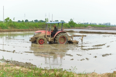圖為湖北春暉農機專業合作社的農機正在整田。