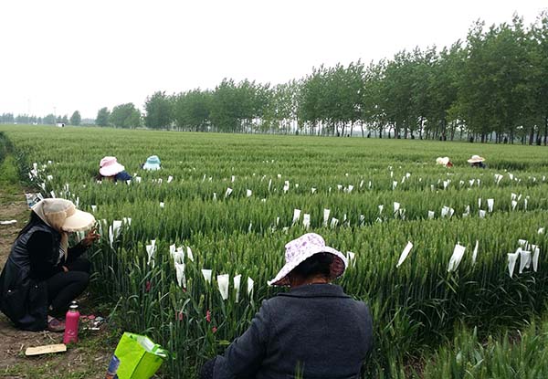 在安徽省宿州市埇橋區灰古鎮,淮河糧食產業化聯合體農民在選育小麥品種(2016年4月25日攝)。