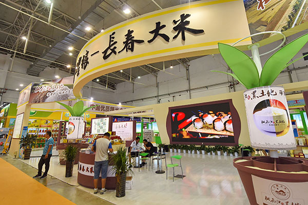 8月17日,市民在第十五屆長春農博會“吉林大米”展區參觀選購。