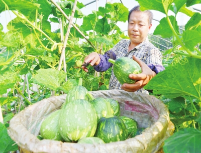 8月23日下午,廣安區崇望鄉自力村農業業主李發富在地里採摘秋季上市的嫩南瓜。