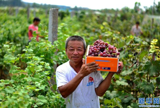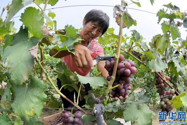 8月23日,河北省威縣東夏官村農民在採摘葡萄。