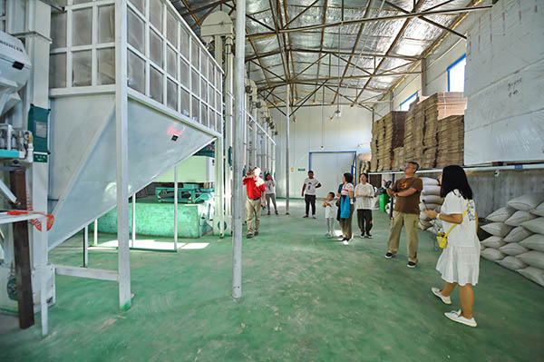 8月29日,工作人員帶領客戶參觀稻米加工工廠。