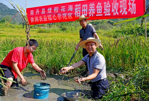 近年來,南丹縣在綠稻花海休閒農業核心示范區積極推行稻田養魚。經過幾年的探索實踐,證明了稻田養魚不但可以減少農藥施用量,節約種糧成本,而且有機米的品質和價格得到了提升,農民種田的附加值得到提高,農田環境得到了保護。稻田里的禾花鯉由于味美無公害很暢銷。稻田養魚已成為當地群眾增產增收的特色項目之一。