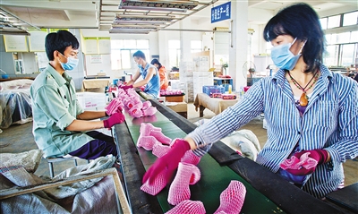 傍晚,海口金德豐農業有限公司蓮霧基地內,夕陽的斜暉已經照進包裝車間,工人們依然一片忙碌景象。