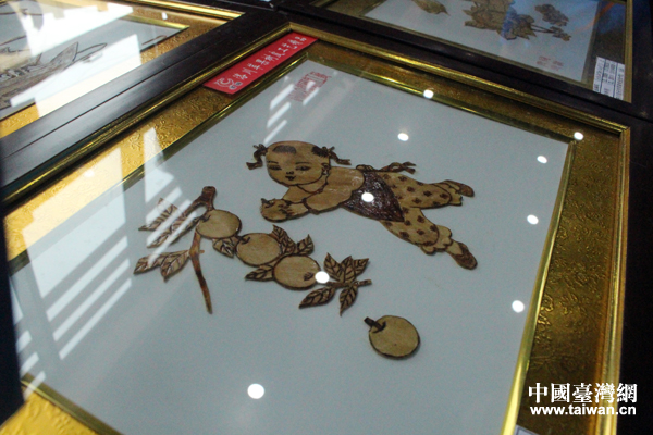 圖為一幅蘋果樹皮畫。(中國臺灣網 張潔 攝)