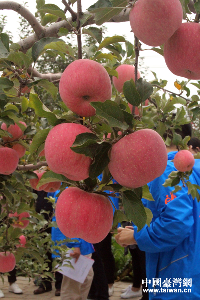 陜西省洛川縣洛陽村的陳成建老人對村里種植的蘋果讚不絕口。(中國臺灣網 張潔 攝)