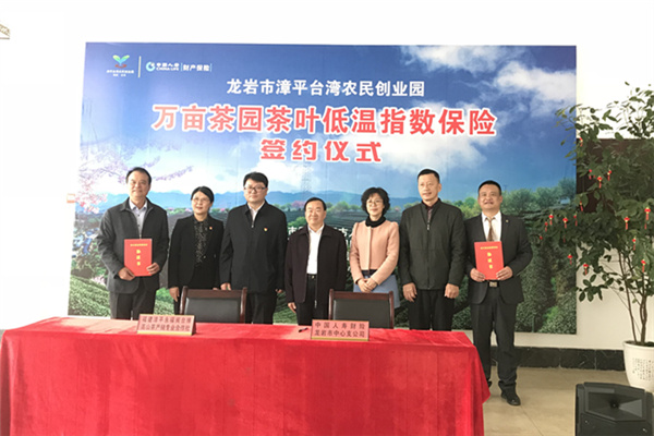 據了解,漳平臺創園核心區永福鎮平均海拔780米,年平均氣溫17.4℃,園區現入駐臺資企業66家,其中高山茶企48家,種植茶葉面積5.5萬畝,年產茶1600多噸、產值7.2億元,參與投資的臺商600多人,是臺商個體在大陸投資最密集的園區。近年來,由于異常天氣頻發,特別是“倒春寒”導致茶葉受災、茶農減產減收,不僅給茶農帶來較大的經濟損失,也不利于茶葉產業的可持續發展。在各級部門的關心指導下,漳平臺創園經與臺商和中國人壽財險龍岩市中心支公司共同努力,達成萬畝茶園茶葉低溫指數保險項目合作。