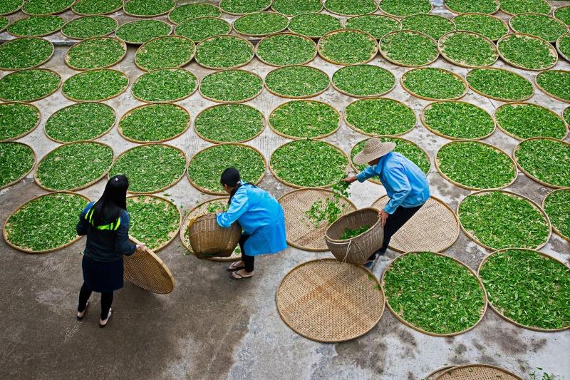 我們來到茶場那天,正值西陽春茶大採。林君亮正在和茶農們在茶葉加工車間里面忙碌緊張地制茶,機器轟鳴,熱氣騰騰,大家都被烘烤得滿臉通紅,汗流浹背。俗話說:“茶葉頭三天是寶,後三天是草。”春雨延綿,茶樹抽枝長葉特別快。為了搶時間摘茶、制茶,林君亮和茶農們已經幾天沒有好好睡覺了。但是,他們想到半個月後,一批由精選過的“一芯二葉”嫩茶葉制成的明前茶將及時投放到市場,讓好茶之客搶先嘗鮮、賣到好價錢,他們覺得和時間賽跑再辛苦也值得。