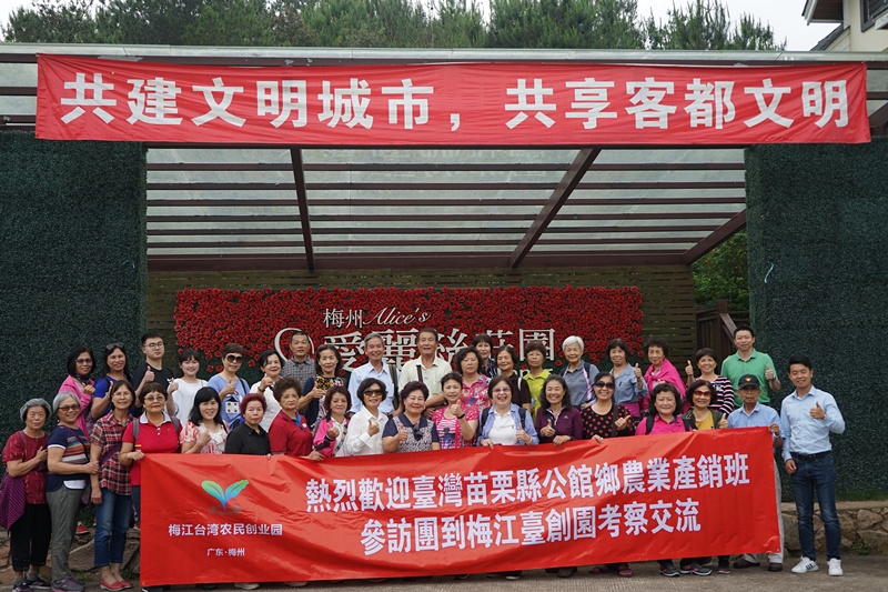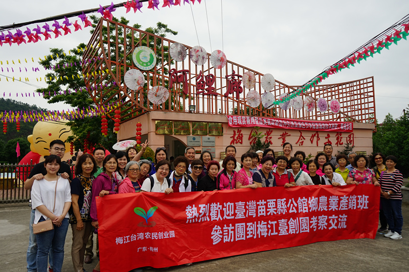 海峽兩岸農業合作網5月10日梅州訊 為促進梅臺農業生產技術、農產品質量提升和產品營銷方面交流合作,5月1日,以縣議員孫素娥為團長的臺灣苗栗縣公館鄉農業產銷班參訪團一行35人到廣東梅州梅江臺灣農民創業園(簡稱臺創園)考察交流。參訪團一行在梅江臺創園管委會相關人員的陪同下,先後到愛麗絲莊園、梅臺農業合作示范園阿鯉廊等園區企業參觀考察,認真聽取了企業相關負責人的情況介紹,實地了解園區建設發展情況。