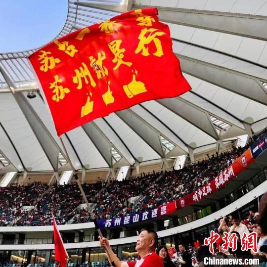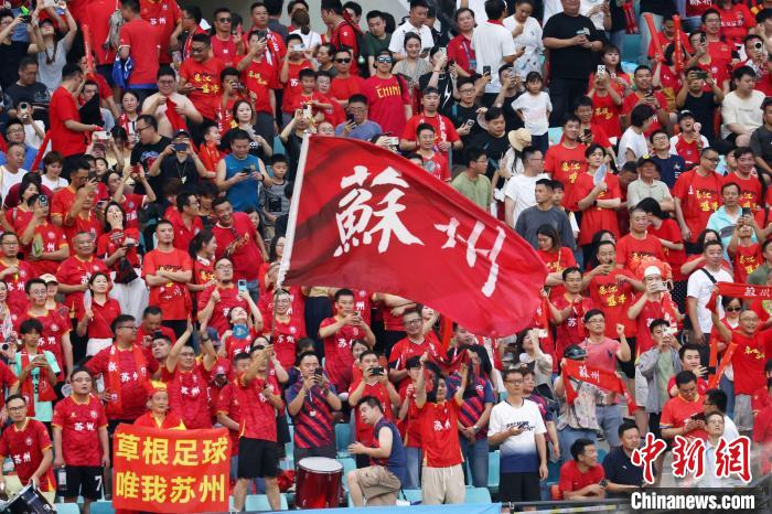 中新網蘇州6月30日電(記者 鐘升)29日晚,蘇州昆山奧體中心足球場內人聲鼎沸,江蘇省城市足球聯賽(又名“蘇超”)第五輪蘇州隊主場對戰揚州隊的比賽正火熱進行。隨著蘇州隊的一粒進球,場上比分變更為3:0。在“蘇臺一家親 蘇州就是行”的旗幟下,一群在昆山工作、生活的臺胞高聲歡呼,與大陸朋友一道分享著喜悅。