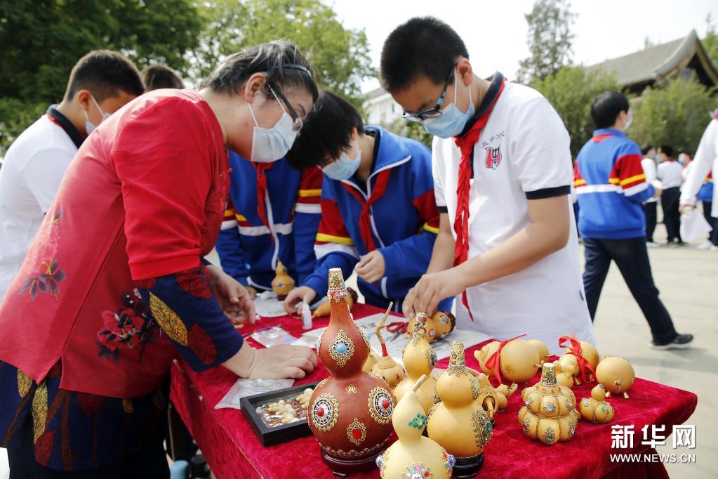 5月10日,學生們在民間藝人指導下體驗葫蘆鑲嵌。