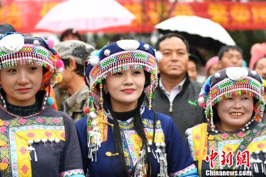 圖為天峰山歌會上的傈僳族少女李珂(中) 駱忠華 攝