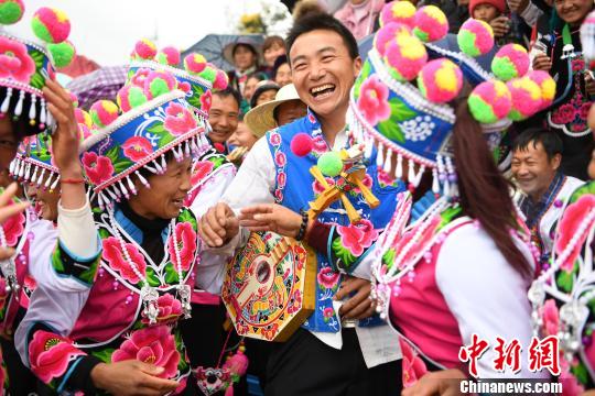 大理州祥雲縣普淜鎮天峰山位于大理州祥雲縣、楚雄州姚安縣、楚雄州南華縣三縣交界處,“地勢陡峭,山川奇秀,異峰突兀”。楊壽介紹,天峰山俗稱老君山,山上有座老君殿,是西南道教名山之一。相傳為了慶祝老君的生日,每年農歷二月十五,附近3個縣的村民都會聚集到天峰山,舉行祭祀活動、選拔天峰山歌會“歌王”“歌娘”、進行民族民間傳統歌舞展演等。當地民眾告訴記者,這歌會也是年輕男女互訴愛意,尋找另一半的好時機。