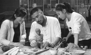 ■河北省工藝美術大師馬若特(中)進行泥人創作。