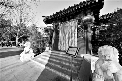 昨日,位于北海公園內的乙十六禦膳堂門前擺出停業調整的牌子。新華社發