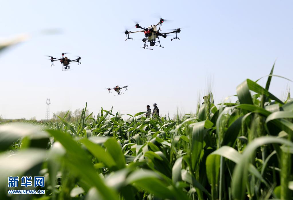 在安徽省全椒縣六鎮鎮草庵村,工作人員操作植保無人機開展噴防作業(4月9日攝)。 新華社發(沈果 攝)