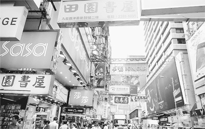 香港寸土寸金的黃金地段,各種店鋪招牌林立,獨立書店也努力躋身其中。來源:人民日報