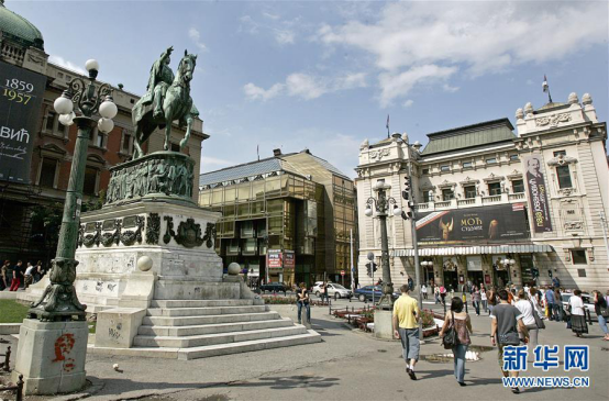 塞爾維亞米哈伊洛王子紀念碑和國家劇院(新華網發)