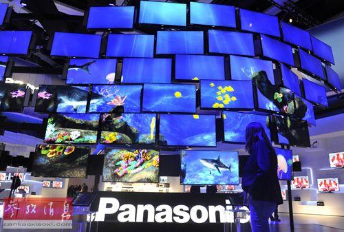 資料圖片:2012年8月29日,在德國首都柏林舉行的消費電子展上,參觀者在松下展廳觀看“電視牆”。