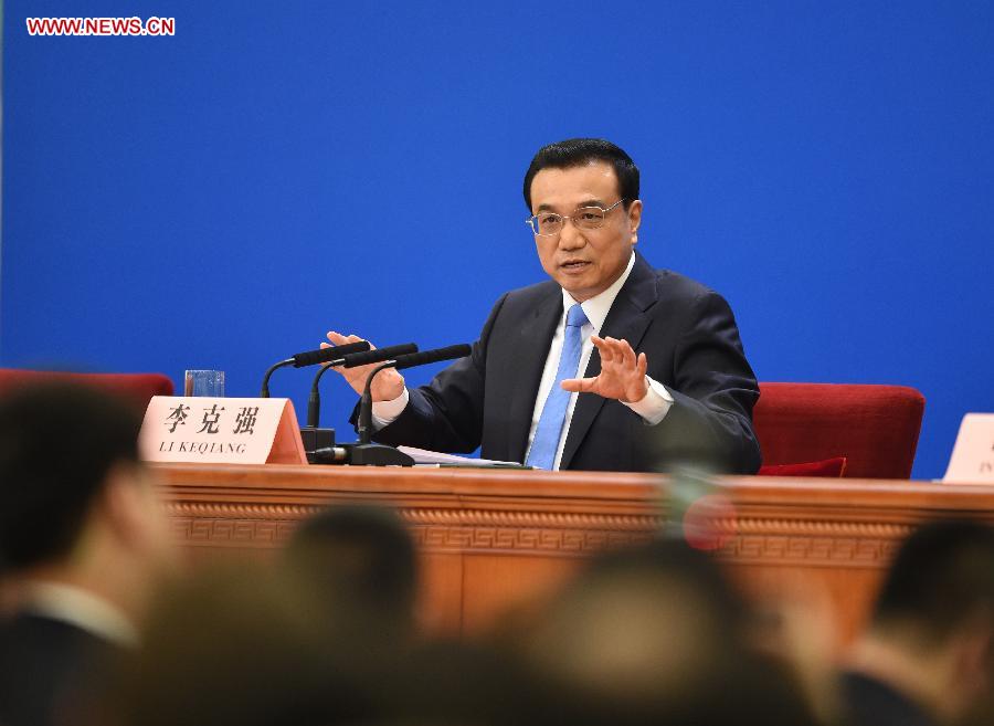 Chinese Premier Li Keqiangspeaks at a press conference after the closing meeting of the third session of China's 12th National People's Congress (NPC) at the Great Hall of the People in Beijing, capital of China, March 15, 2015. (Xinhua/Xie Huanchi)