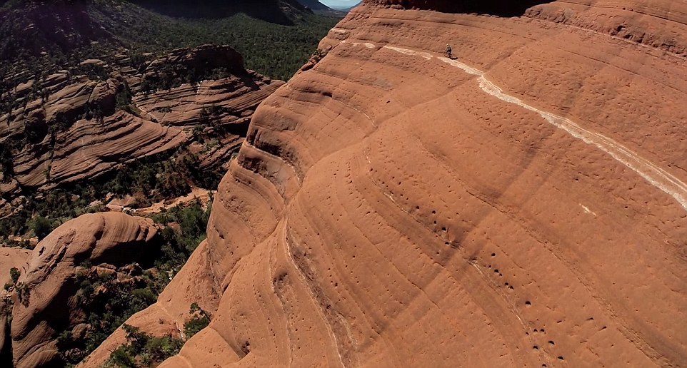 This breathtaking video captures the moment a Polish cyclist, Michal Kollbek, traverses an almost-vertical rock face to conquer the world's most dangerous trail- a near impossible route carved into a rock in Arizona. (Photo source:china.com.cn)