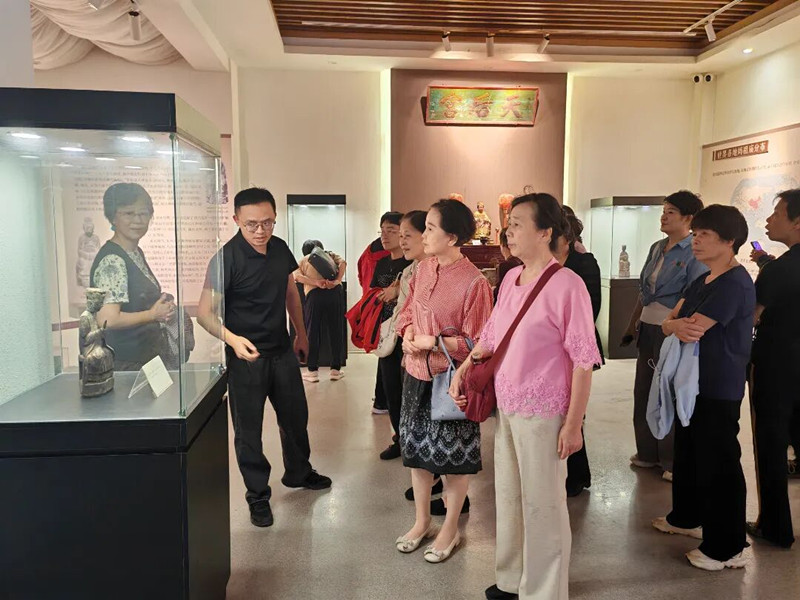老臺胞們一起走進秋日的聚龍小鎮,感受相映成趣的湖光山色。他們參觀了聚龍小鎮美術館,一邊仔細欣賞書畫作品,一邊交流心得,其樂融融。隨後大家信步至“一瓣香”媽祖文化展覽館,深入了解媽祖信俗的起源、發展與傳播,感受媽祖文化的深厚底蘊與獨特魅力。
