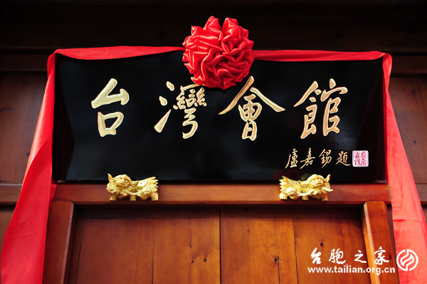 修繕後的臺灣會館牌匾,“臺灣會館”四字為原全國人大常委會副委員長盧嘉錫鄉親所題寫。