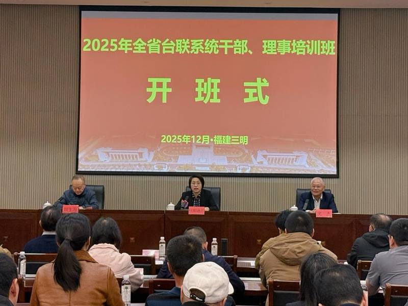12月1日至12月5日,2025年福建省臺聯係統理事、幹部培訓班在三明市委黨校舉辦。省臺聯、各設區市臺聯理事、幹部等40余人參加培訓,省臺聯黨組成員、副會長歐陽迪莎出席開班式並講話。
