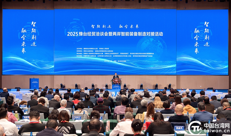 10月23日,中共中央臺辦、國務院臺辦副主任潘賢掌在鄭州出席2025豫臺經貿洽談會暨兩岸智能裝備制造對接活動並致辭。