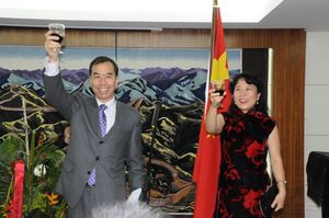 2010年2月11日晚,在歡樂祥和的氣氛中,陳平臨時代辦在大使館舉行2010年春節招待會。來自委內瑞拉各地的僑領、中資企業領導和代表約160人與會。