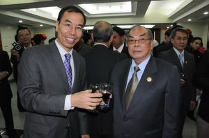 招待會前,陳代辦專門召集60多位僑領舉行長達二個多小時座談,向他們介紹了一年來使館重視並改進領事工作的主要情況,並就使館的領僑工作、僑胞們面臨的困難和問題聽取大家意見,張家榜、許可祝兩位領事解答了僑領們提出的問題。 |