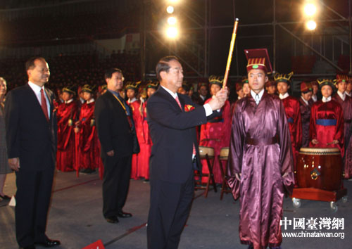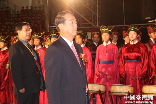 9月27日上午,2009年第二屆兩岸師生聯合祭孔大典在臺灣新竹縣立體育館舉行,圖為親民黨主席宋楚瑜先生受邀主禮正獻。(中國臺灣網 李傑 攝)