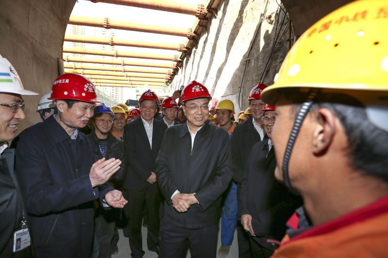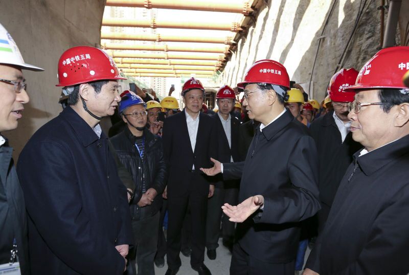 14日,李克強來到貴陽輕軌1號線施工現場,考察城市基礎設施建設。總理戴上安全帽走進隧道,詢問工程進度。多數施工者來自農村,李克強稱讚他們是城市功臣。他叮囑省領導,等這條輕軌修通後,你們一定要請回這些一線建設者,乘坐首班列車。