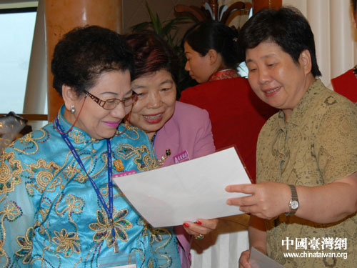 晚宴結束前,賓主雙方互贈禮品。洪玉繡還代表中華工商婦女企業管理協會向上海市臺聯獎學金基金進行了捐贈。