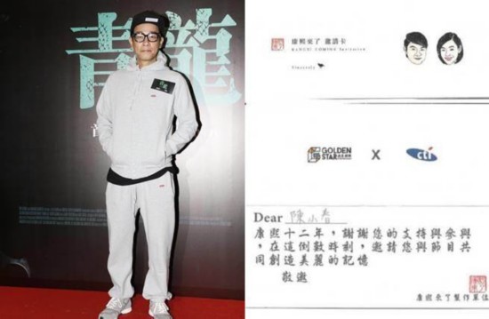 人民網11月12日電 據臺灣“中時電子報”報道,播出12年的節目《康熙來了》,即將在11月底錄制最後一集,先前傳出節目打算邀請百位嘉賓同樂,其中從沒上過《康熙》的范冰冰更令人好奇是否名列其中。但陳小春搶先自曝,他昨(11日)在微博曬出《康熙》邀請卡,證明自己將會是嘉賓之一。
