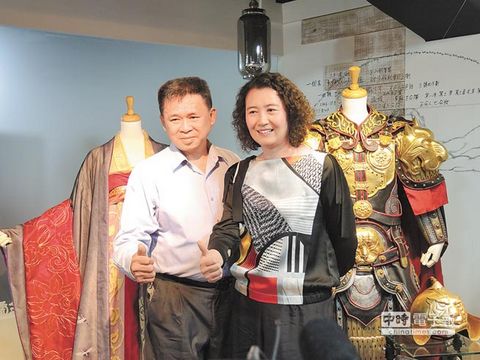 臺北霞海城隍廟主辦“穿越大稻埕的刺客地圖”電影服裝特展,《刺客聶隱娘》服裝設計師黃文英(右)、旗袍師傅陳忠信與作品合照。來源:臺灣《中國時報》