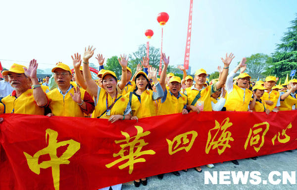 10月16日,臺灣客家後裔在第十五屆世界客屬石壁祖地祭祖大典上。