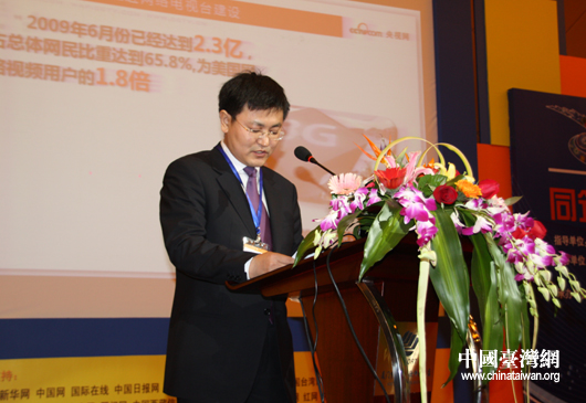 央視網副總經理問永剛在會上發表《引領視頻潮流 推進網絡電視臺建設》的主題演講(中國臺灣網 陳寧 攝)