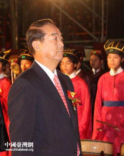 9月27日上午,2009年第二屆兩岸師生聯合祭孔大典在臺灣新竹縣立體育館舉行,圖為親民黨主席宋楚瑜先生受邀主禮正獻。(中國臺灣網 李傑 攝)