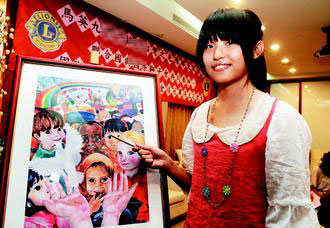 據臺灣《聯合報》報道,臺中市五權初中三年級學生陳鬱旻,參加2009到2010年度聯合國和國際獅子會合辦的國際和平海報創作比賽,擊敗35萬名參賽者,勇得世界第一。