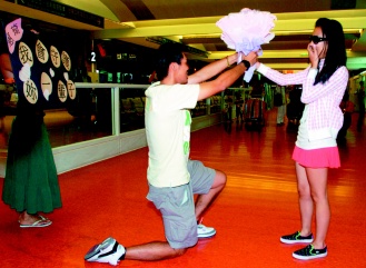 中新網8月26日電 據臺灣《聯合報》報道,七夕情人節到來前夕,桃園機場入境大廳出現浪漫求婚情節。