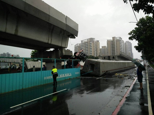 據臺灣聯合新聞網報道,新北市淡水區中山北路三段與濱海路一段交叉路口,正在施作的淡水捷運輕軌工程,傳出正在吊挂的軌道掉落,現場有一臺吊車跟軌道一起翻落地面,男性吊車司機受傷,但目前意識清醒,警消趕往搶救中。(記者祁容玉)