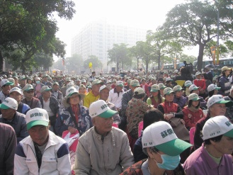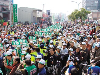 臺南市長許添財在臺南縣永康市成立競選總部,永大路涌進2萬多人、路面封閉1公里,比陳水扁參選返鄉造勢場面還要盛大。來源:臺灣《聯合報》