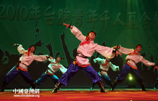 6日,全國臺聯2010年臺胞青年千人夏令營在北京舉行開營儀式。圖為大陸高校青年獻上了精彩文藝演出。(中國臺灣網 張弛 攝)