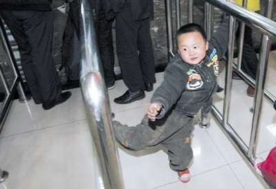 昨日,涪陵,父親前去購買回忠縣的車票,陳忠偉在一旁玩耍 記者 張路橋 攝