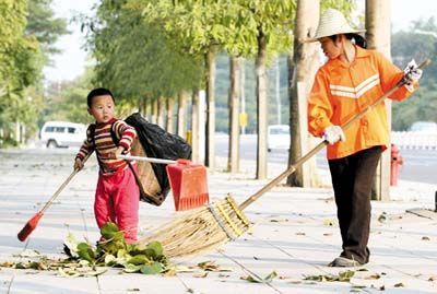 “我們覺得他不好管,就讓當環衛工的奶奶把他帶在身邊,沒想到他就這樣出了名!”陳鵬說,母親上班有兩把掃帚,陳忠偉拿著空出的那一把小掃帚擺弄、掃大街,只是一種調皮的表現,誰都知道,這麼小的孩子是當不上環衛工的。