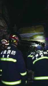 據安徽商報報道 11月23日20時許,合肥繞城高速往徐州方向3K處,發生一起交通事故,一輛大客車與一輛大貨車追尾,造成一死一傷,數十人被困。接到報警後,肥東消防中隊的14名指戰員迅速趕赴現場。經過2個多小時緊張施救,22名被困人員全部安全轉移。