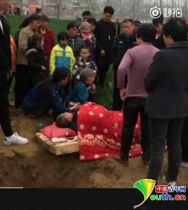 有知情者告訴中國青年網記者,12日上午宋某某家人發現老人失蹤,隨後在家中發現遺書,尋找過程中發現自家麥地出現一座新墳很奇怪,刨開墳墓後才找到奄奄一息的宋某某,就急忙撥打了報警電話和急救電話將老人送往醫院搶救,自己找到家屬時,家屬拒絕介紹更多情況。